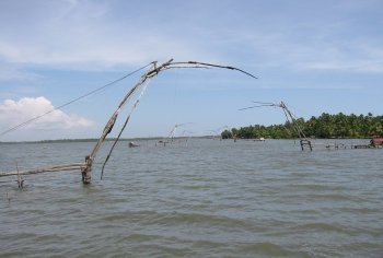 We gaan Mattancherry Palace (en de erbij gelegen joodse wijk) verkennen. Leuk vind ik de oude kaarten die Nederlanders destijds gemaakt hebben met oud-nederlandse aantekeningen erbij. Veel souvenierswinkeltjes, tot nu toe heb je hier veruit de meeste keuze, veel variatie en echt leuke dingen. Ik koop pure bloemenolie van Kerala Flowers, een soort jasmijn in een beeldig flesje. Erg origineel. Verder toeren we rond met de ferryboot. De boot kost 3 Rps voor 2 personen maar ze hebben niet terug van Rps 50. Dirk koopt de ritprijs maar af met 2 sigaretten. We hebben tijd genoeg om de buurt van MG Road te verkennen in de wijk Ernakulam. Hier liggen de prijzen niet toeristisch en het is best leuk even de andere kant van de stad te zien.