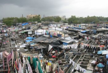 Later gaan we het oude centrum in, wat bazaars en met name de antiekwinkeltjes in Mutton Road of de dievenbazaar, de Chor Bazar. Ook willen we naar de Dhobi Ghats. Deze “wasserij”voor heel Bombay is werkelijk heel bijzonder. Ik heb ontzettend medelijden met die arme mensen die hier hun brood verdienen. Doordat ze zo’n beetje de hele dag met hun voeten in het water met wasmiddelen staan zitten die onder het eczeem, hun handen beschermen ze enigszins met plastic handschoentjes.