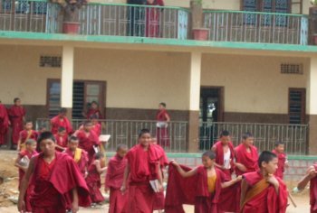Dirk blijft 2 dagen in bed. Ik ga met de groep mee naar de Tibetaanse kloosters Sera Je en Sera Mey in een nederzetting die heet: Sera Je van de Tibetaanse enclave bij Bylakuppe.