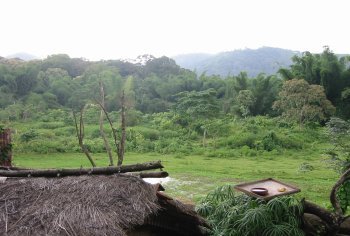’s Morgens vroeg op voor een wandeling door het natuurpark. Het is vrij glad door het regenachtige weer en het krioelt van de bloedzuigers. We krijgen bloedzuigersokken aan en medicijn erop gestrooid, zodat ze niet naar boven kunnen kruipen. Geen overbodige luxe blijkt later. We zien antilopen, reeën, apen, wilde zwijnen, vogels oa specht, en later op de dag tijdens een tochtje per boot over het meer, familie otters en een schildpad.